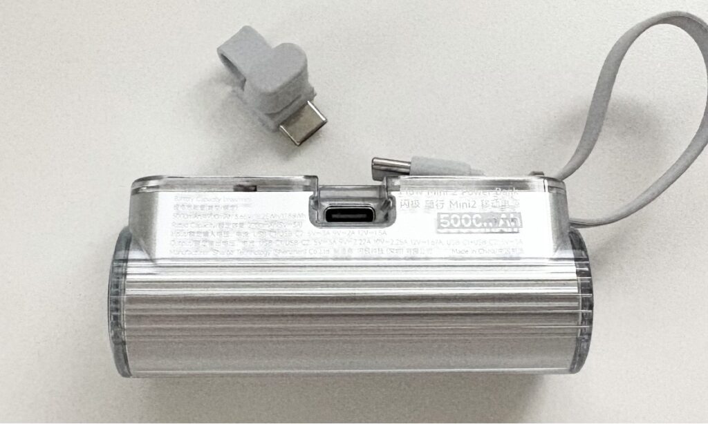 このサイズのモバイルバッテリーは単色でシンプルな見た目のものが多いですが、Flow Mini 2は透明なケースの中にメタリックなカラーが入っているようなデザインで非常におしゃれ。