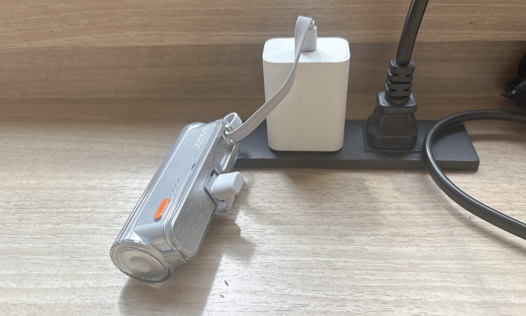 本製品の充電は、上部あるいは内蔵のUSB-Cポートを直接充電器に挿すという形になります。